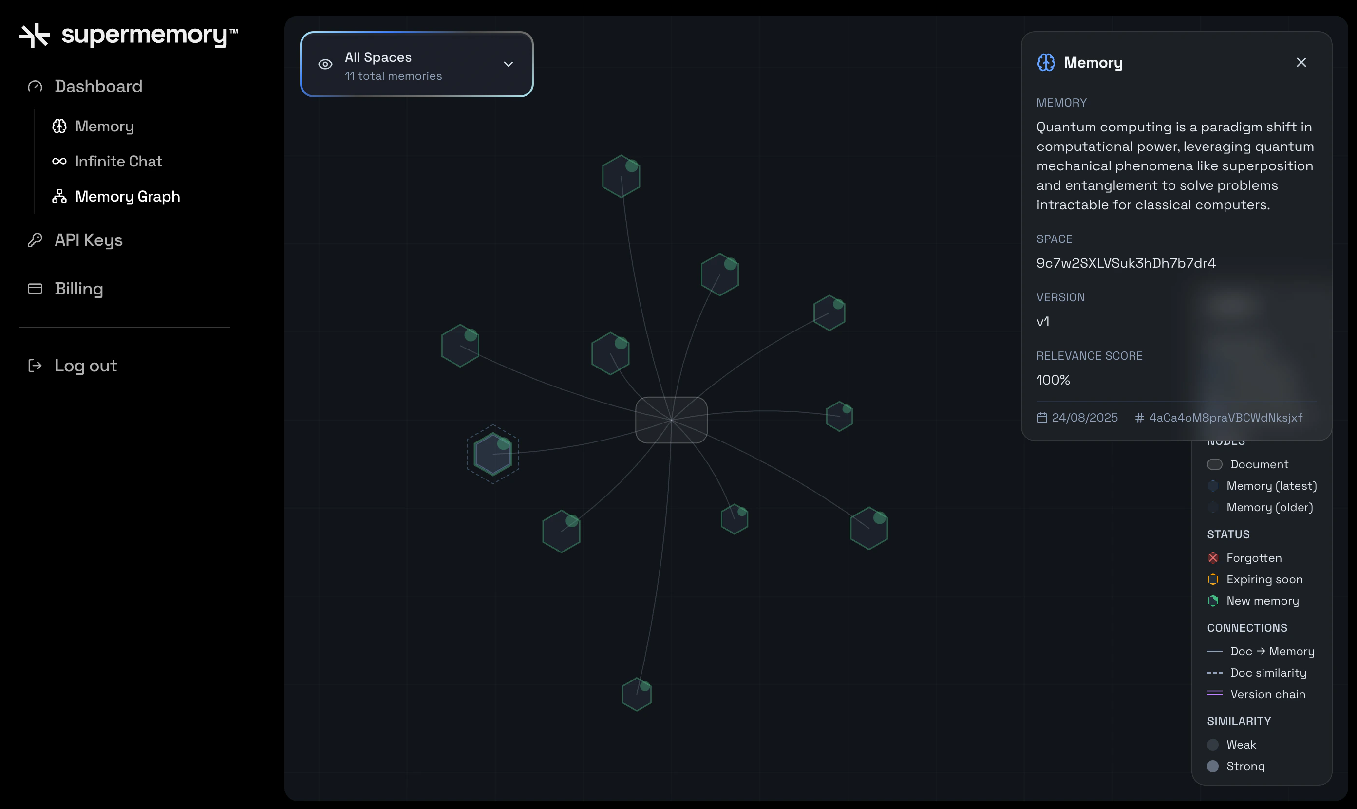 Supermemory isn’t just another document storage system. It’s designed to mirror how human memory actually works - forming connections, evolving over time, and generating insights from accumulated knowledge.
